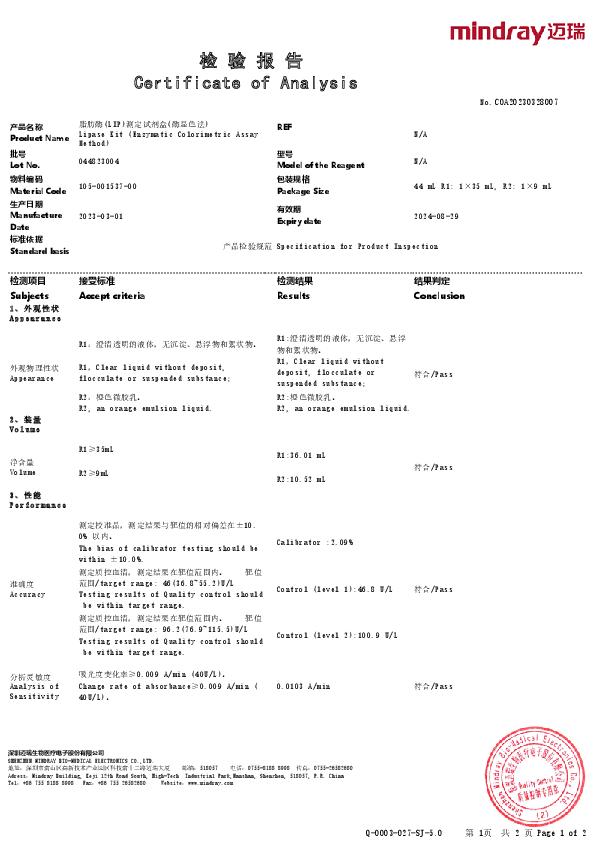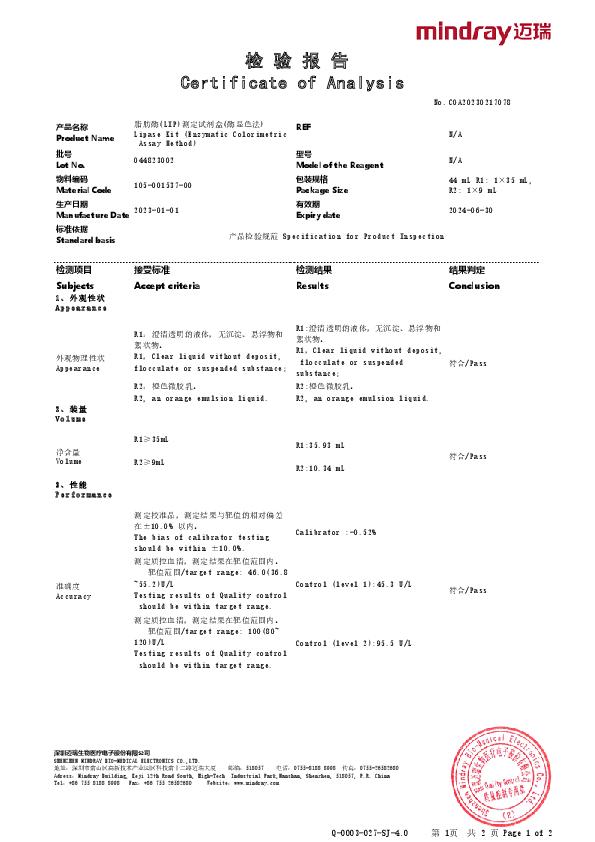 脂肪酶(LIP)测定试剂盒(酶显色法)