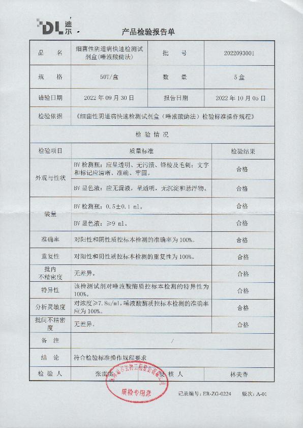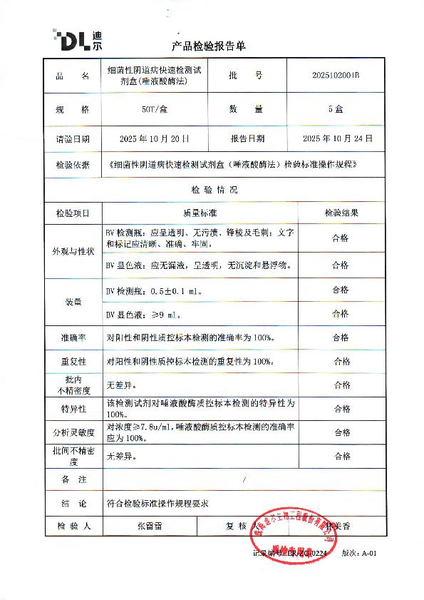 迪尔 细菌性阴道病快速检测试剂盒(唾液酸酶法)
