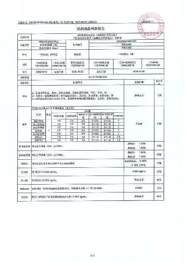 新产业 C肽测定试剂盒(磁微粒化学发光法)