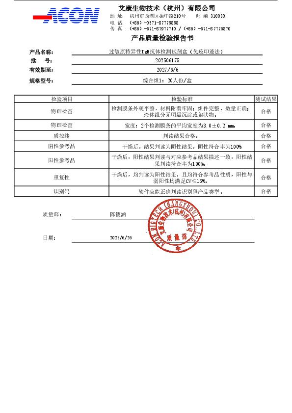 艾康 过敏原特异性IgE抗体检测试剂盒(免疫印迹法)
