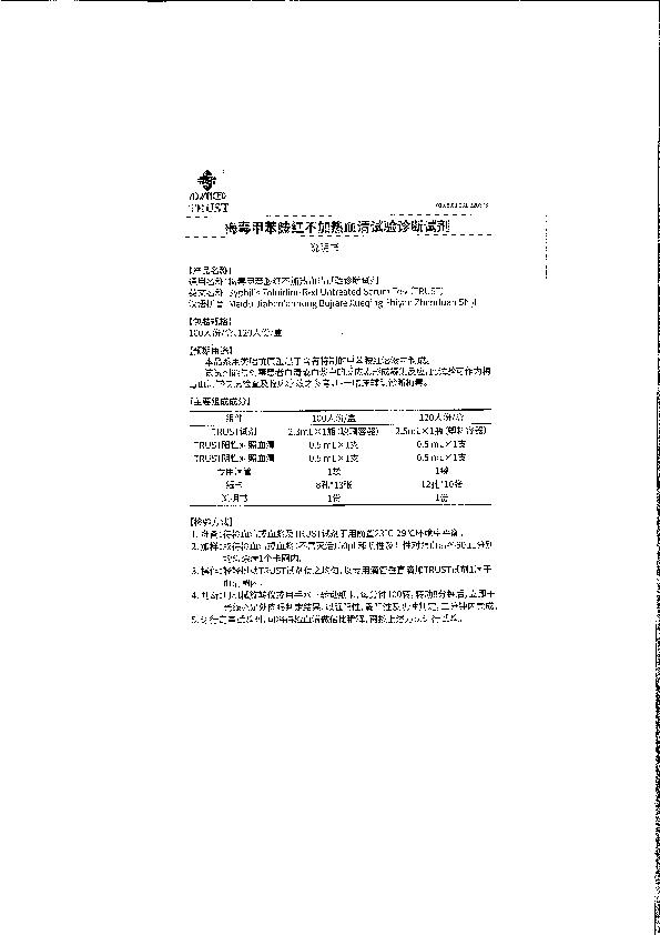 梅毒甲苯胺红不加热血清试验诊断试剂