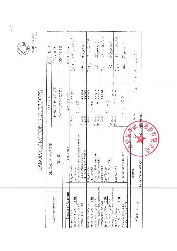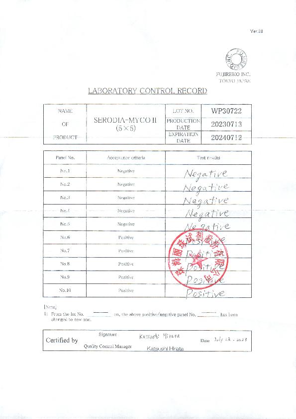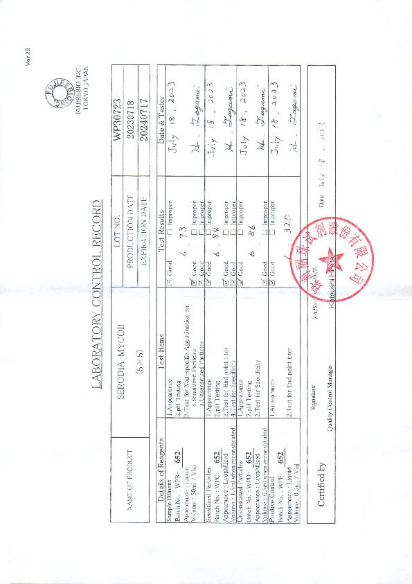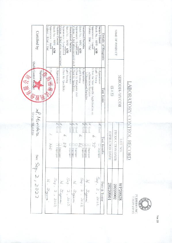 富士肺炎支原体抗体检测试剂盒(被动凝集法)