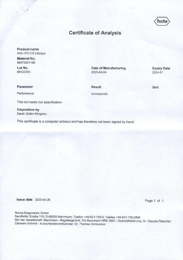 罗氏抗甲状腺过氧化物酶抗体定标液
