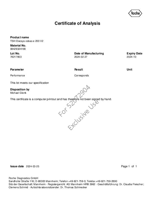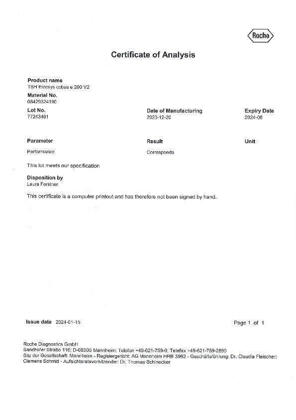 罗氏促甲状腺激素检测试剂盒(电化学发光法)
