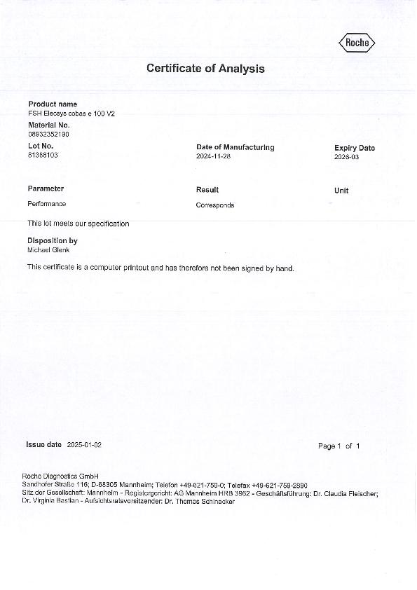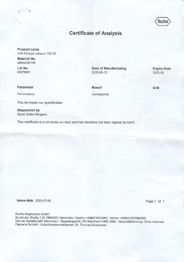 罗氏促卵泡成熟激素检测试剂盒(电化学发光法)