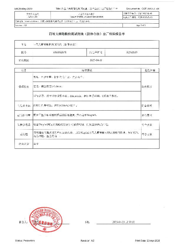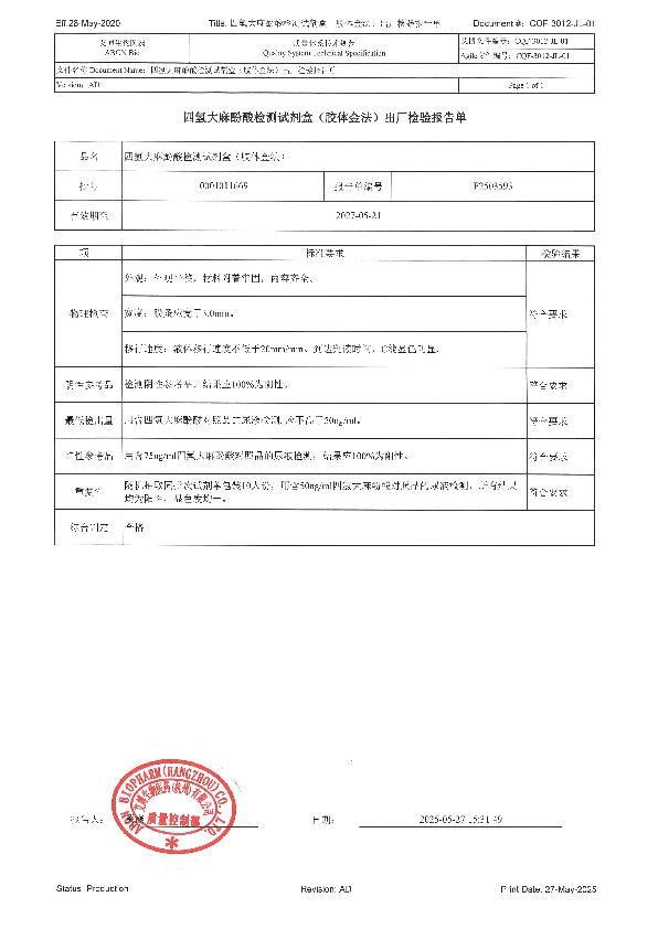 四氢大麻酚酸检测试剂盒(胶体金法)