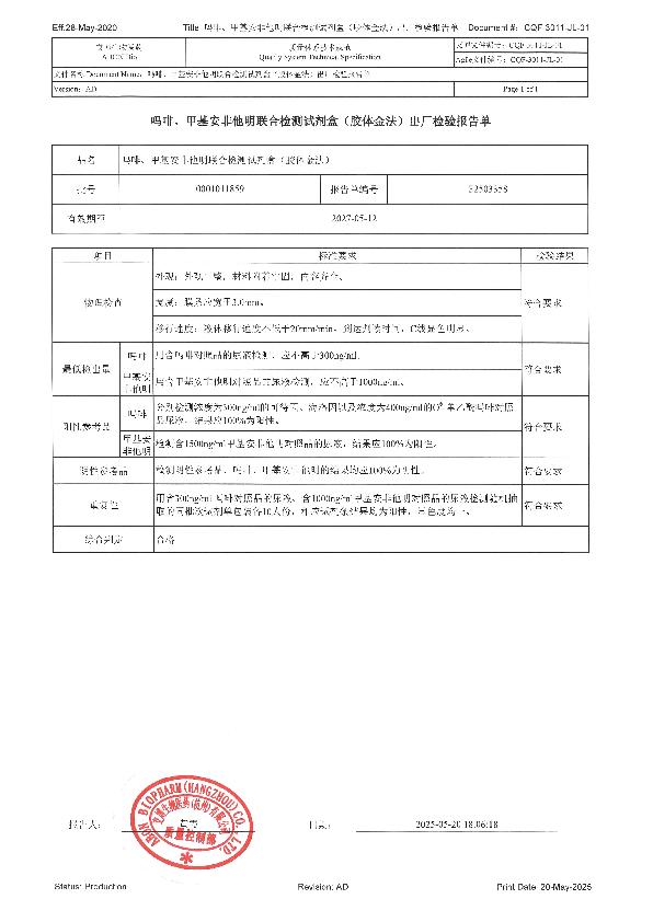 吗啡、甲基安非他明联合检测试剂盒(胶体金法)