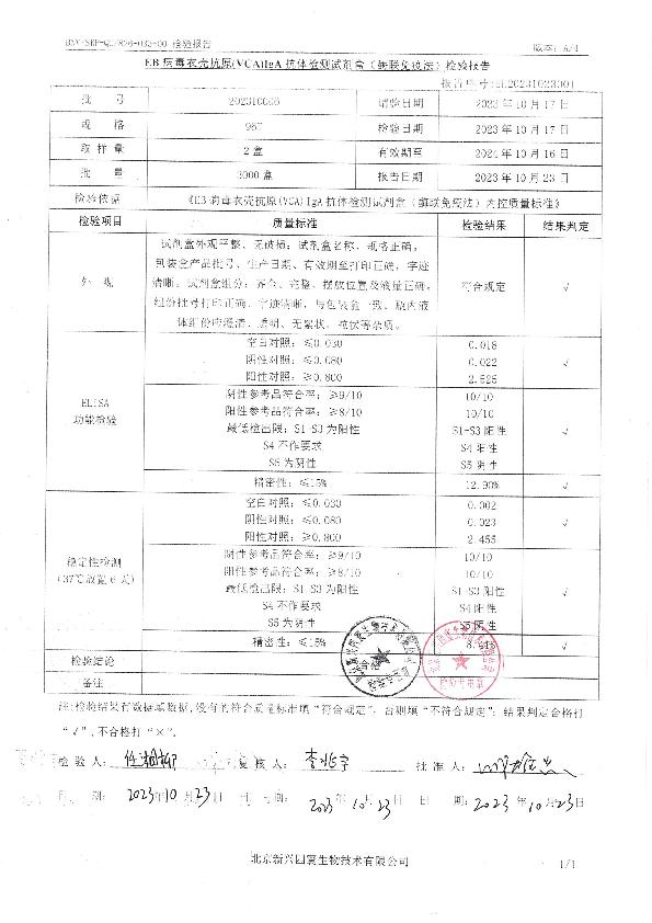 EB病毒衣壳抗原(VCA) IgA抗体检测试剂盒(酶联免疫法)