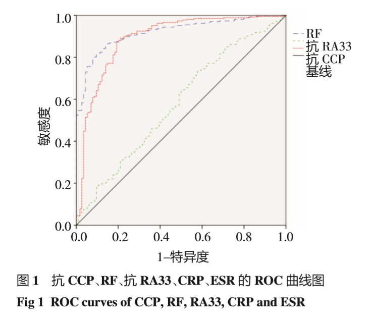 来源:《联合检测抗CCP、RF、抗RA33在类风湿关节炎的临床应用》