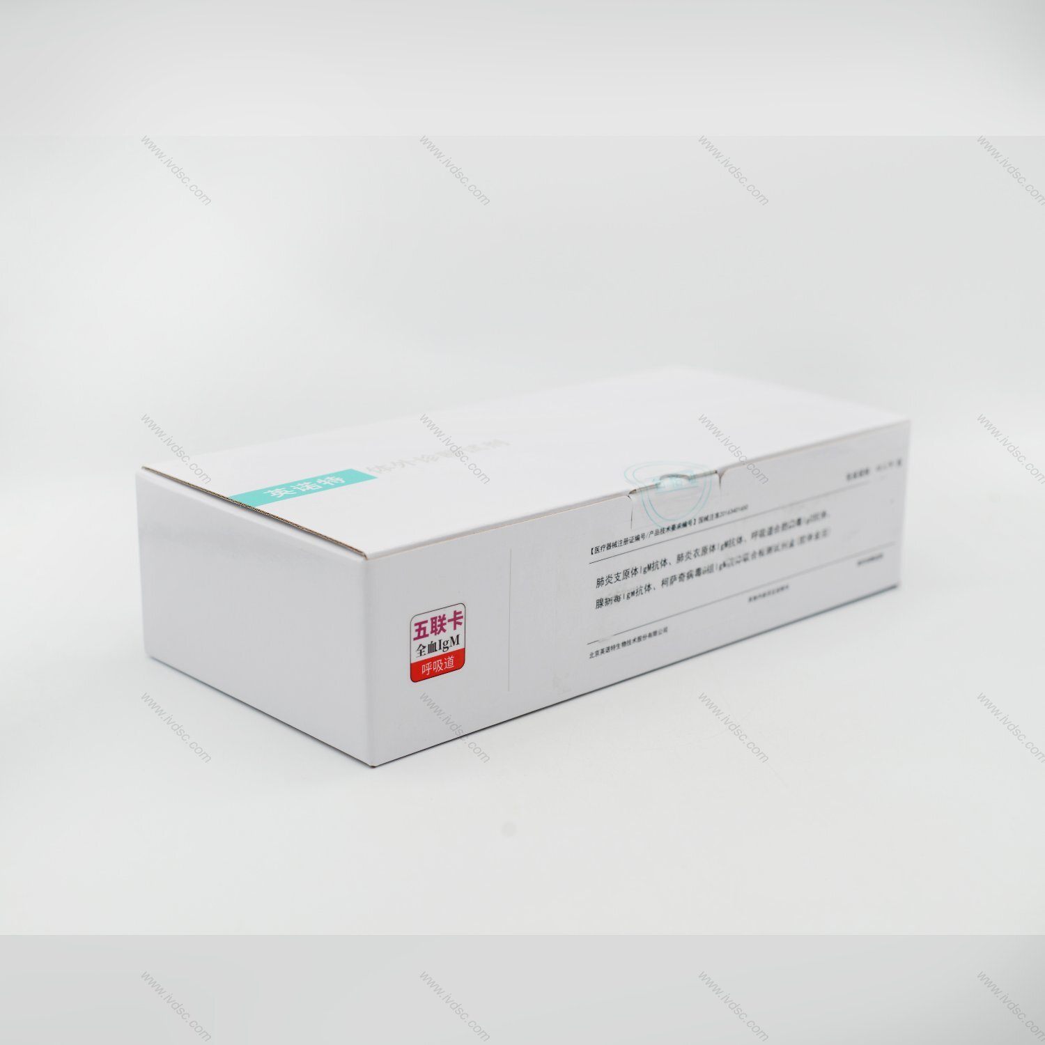 肺炎支原体IgM抗体、肺炎衣原体IgM抗体、呼吸道合胞病毒IgM抗体、腺病毒IgM抗体、柯萨奇病毒B组IgM抗体联合检测试剂盒(胶体金法)