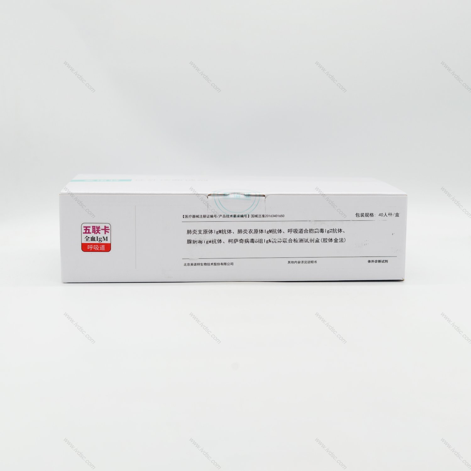 英诺特肺炎支原体IgM抗体、肺炎衣原体IgM抗体、呼吸道合胞病毒IgM抗体、腺病毒IgM抗体、柯萨奇病毒B组IgM抗体联合检测试剂盒(胶体金法)