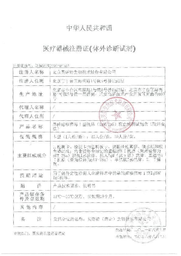 英诺特单纯疱疹病毒I型抗体(IgM/IgG)联合检测试剂盒(胶体金法)