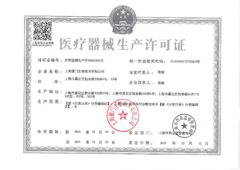 捷门生产许可证