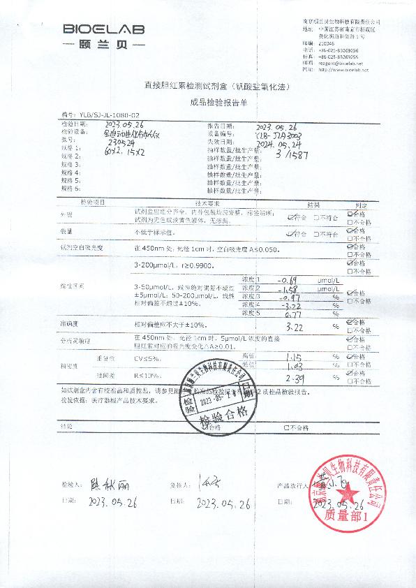 直接胆红素检测试剂盒(钒酸盐氧化法)