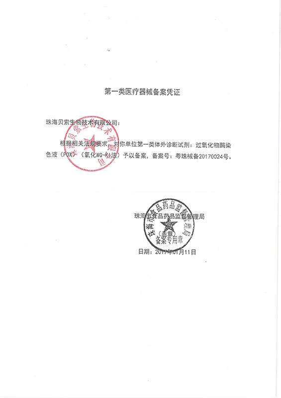 贝索 过氧化物酶染色液(POX)(氧化WG-KI法)