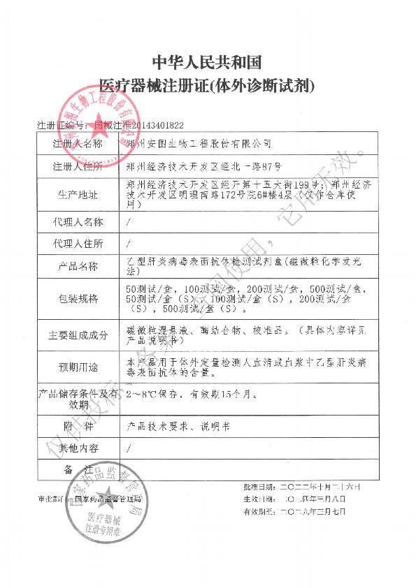 乙型肝炎病毒表面抗体检测试剂盒(磁微粒化学发光法)
