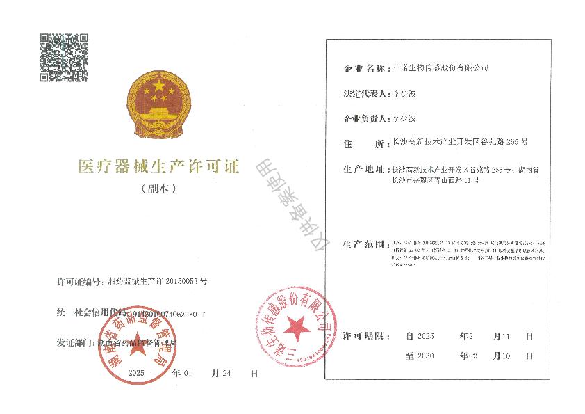 三诺生产许可证