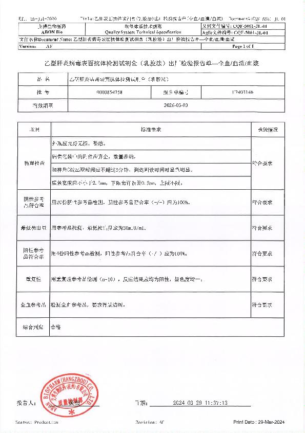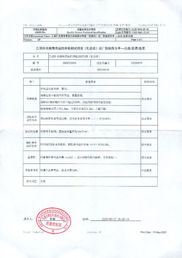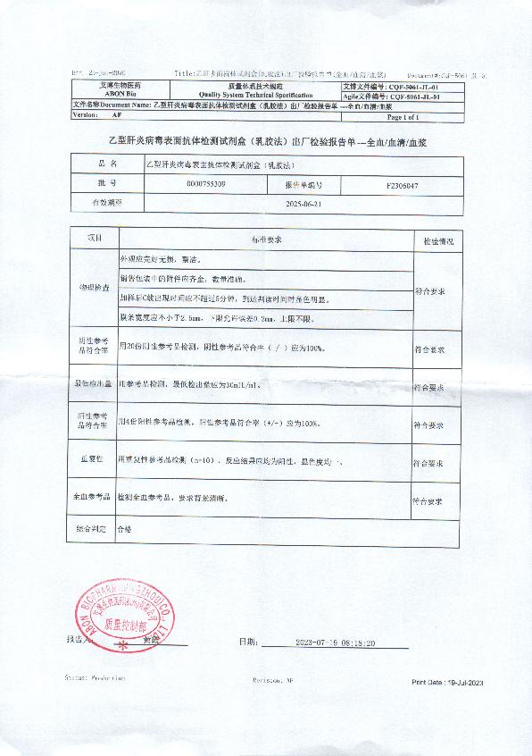 艾博 乙型肝炎病毒表面抗体检测试剂盒(乳胶法)