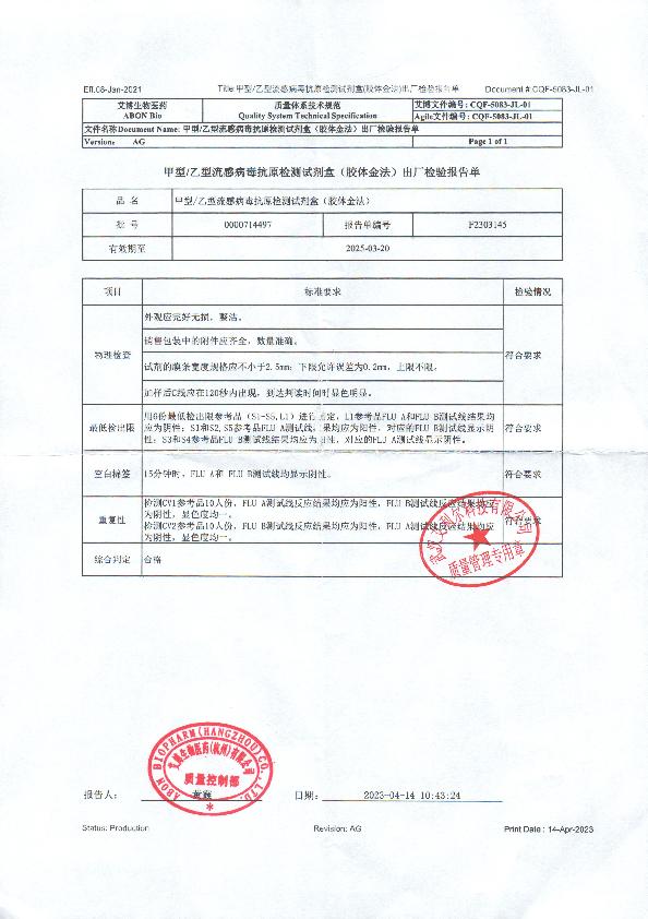甲型/乙型流感病毒抗原检测试剂盒(胶体金法)