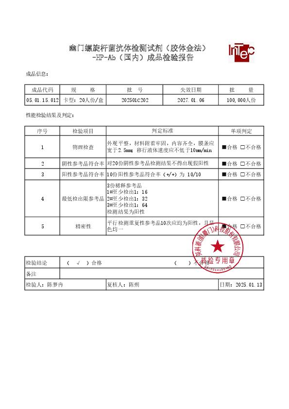 幽门螺旋杆菌抗体检测试剂(胶体金法)