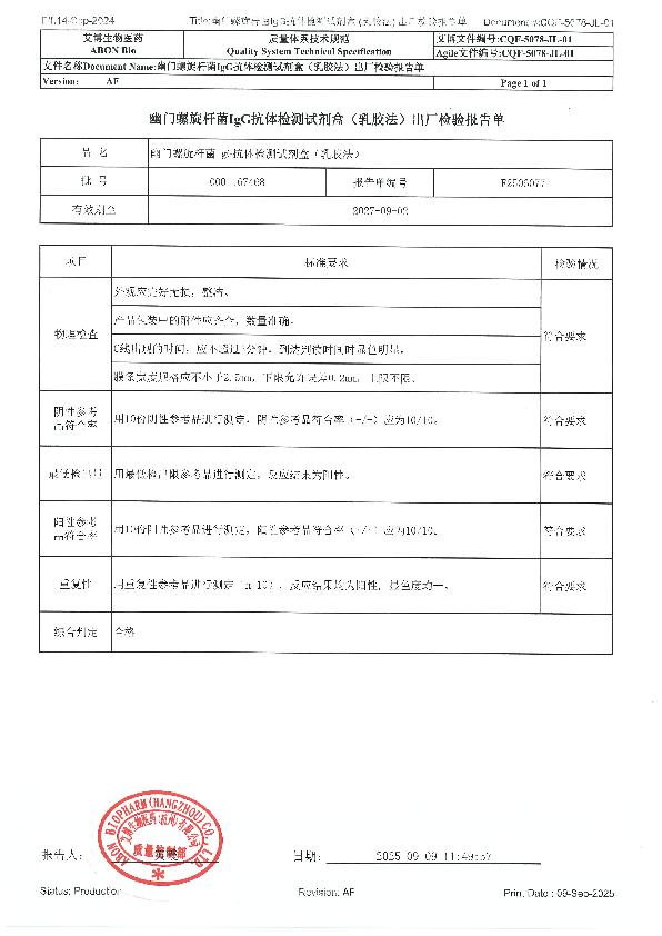 艾博幽门螺旋杆菌IgG抗体检测试剂盒(乳胶法)