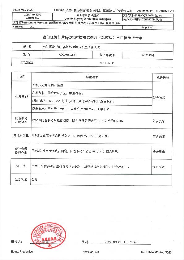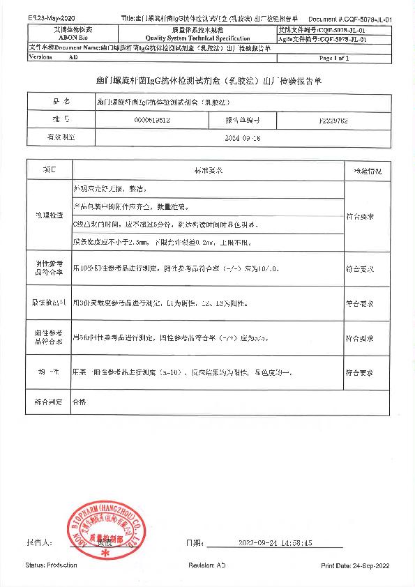 幽门螺旋杆菌IgG抗体检测试剂盒(乳胶法)