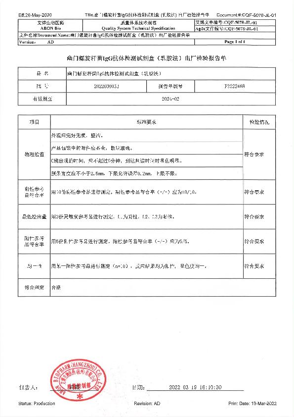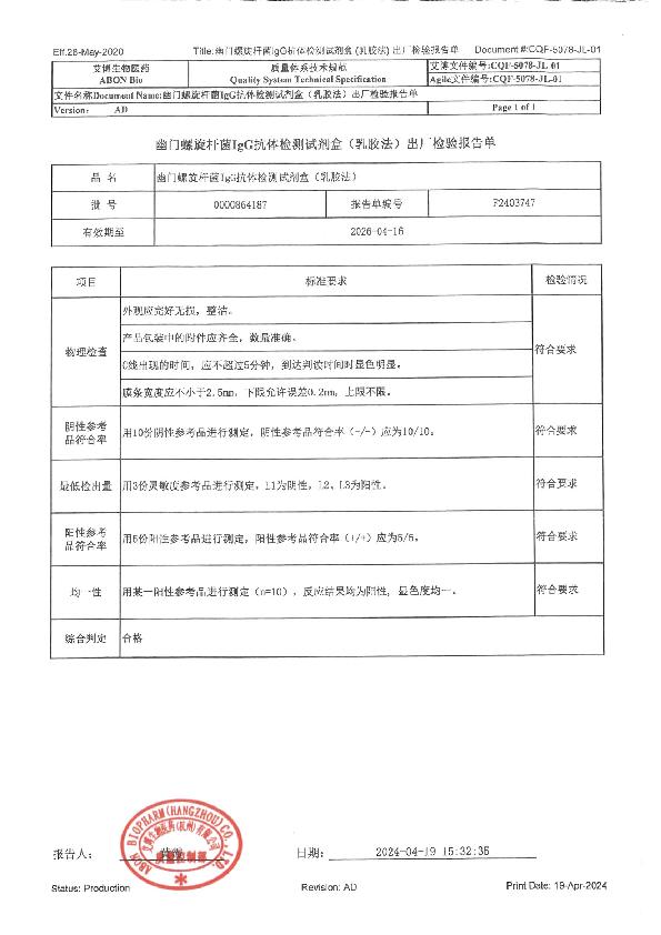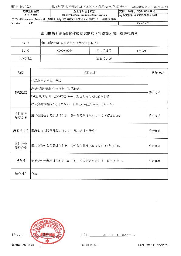 艾博 幽门螺旋杆菌IgG抗体检测试剂盒(乳胶法)