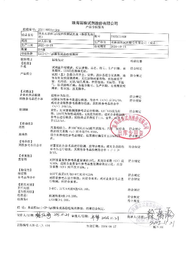 丽珠 肺炎衣原体IgG抗体检测试剂盒(酶联免疫法)