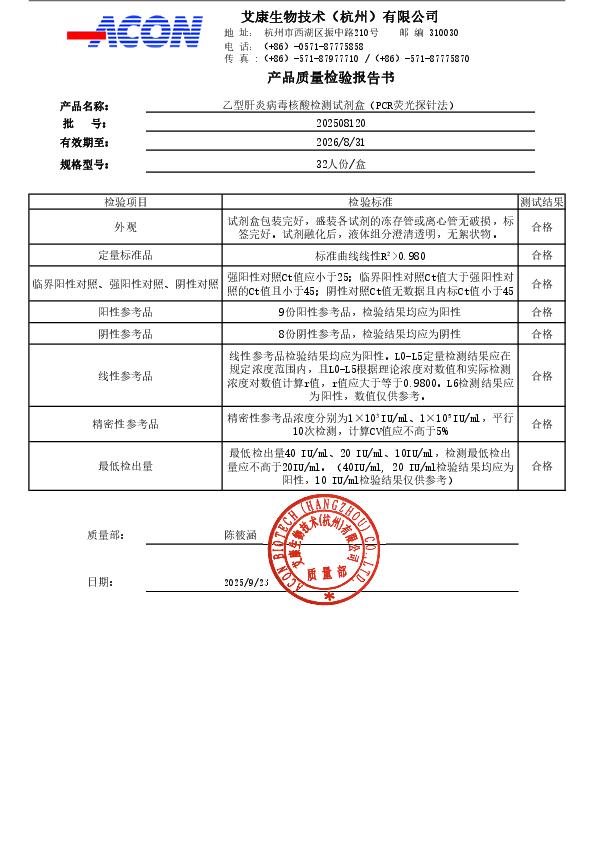 艾康 乙型肝炎病毒核酸定量检测试剂盒( PCR荧光探针法)