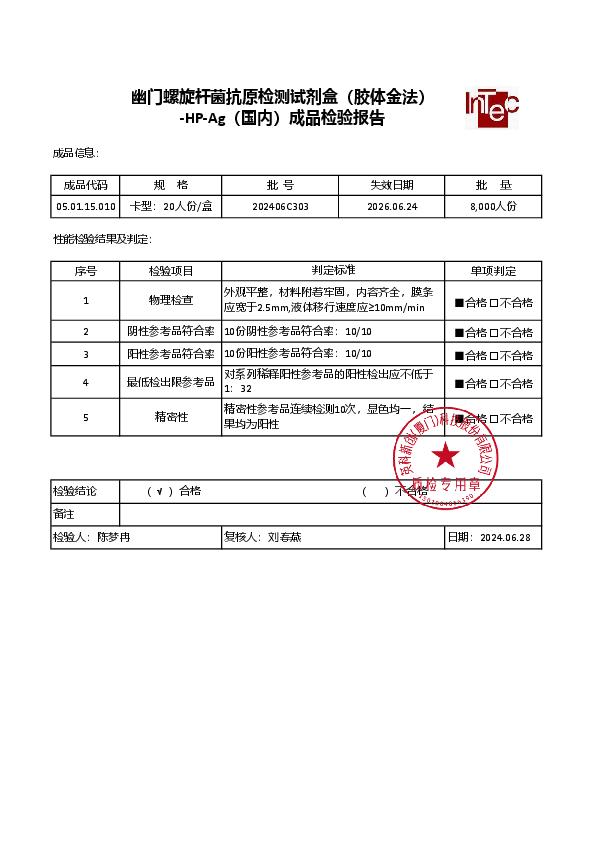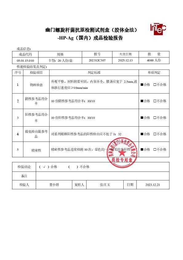 英科新创 幽门螺旋杆菌抗原 抗体检测试剂盒(胶体金法)