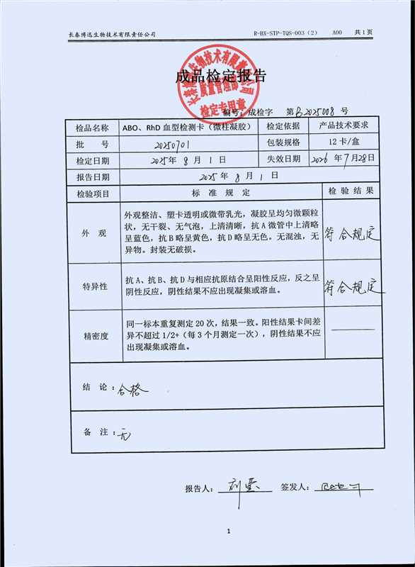 博迅 abo、rhd血型检测卡(微柱凝胶)