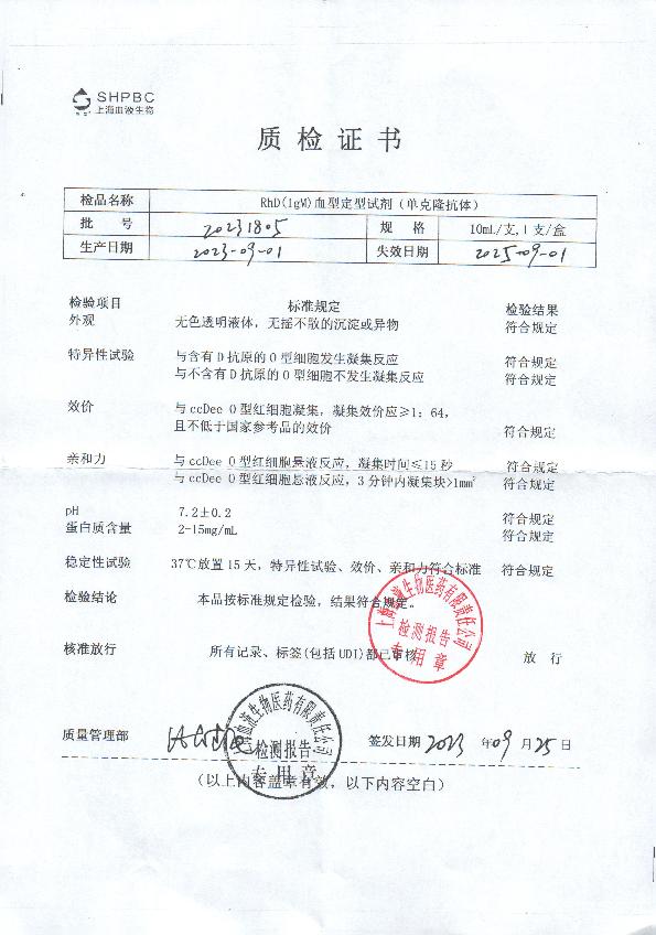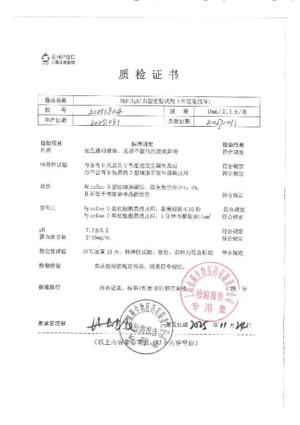 血液RhD(IgM)血型定型试剂(单克隆抗体)