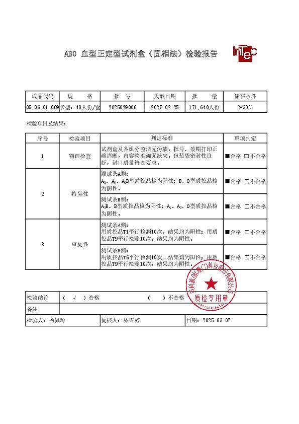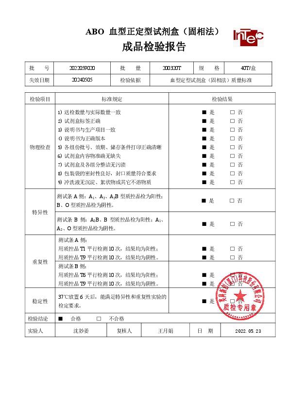 英科新创ABO血型正定型试剂盒(固相法)说明书