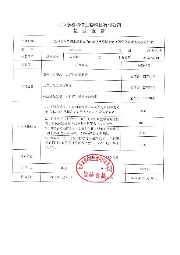 泰格科信 泰格 I型和II型单纯疱疹病毒IgM抗体检测试剂盒(增强化学发光免疫分析法)