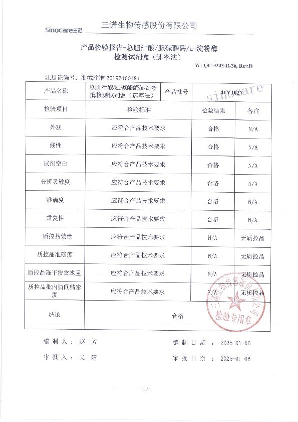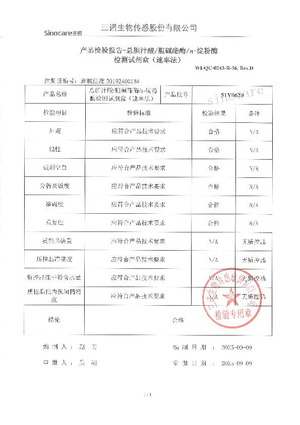 总胆汁酸/胆碱酯酶/ɑ-淀粉酶检测试剂盒(速率法)