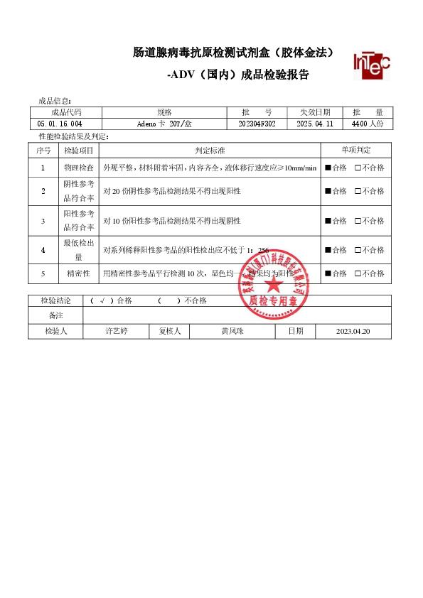 肠道腺病毒抗原检测试剂盒(胶体金法)