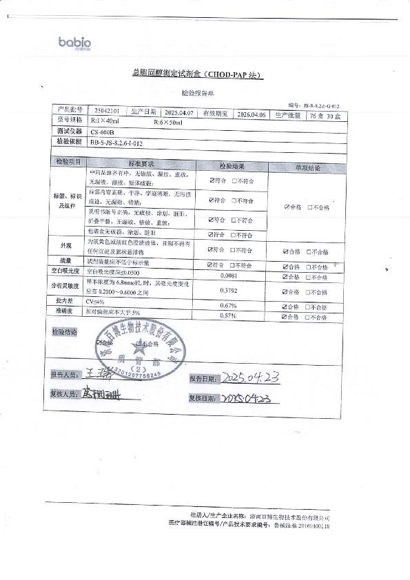 总胆固醇测定试剂盒(CHOD-PAP法)