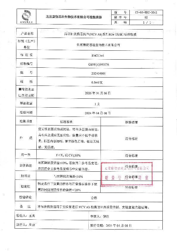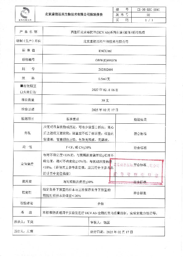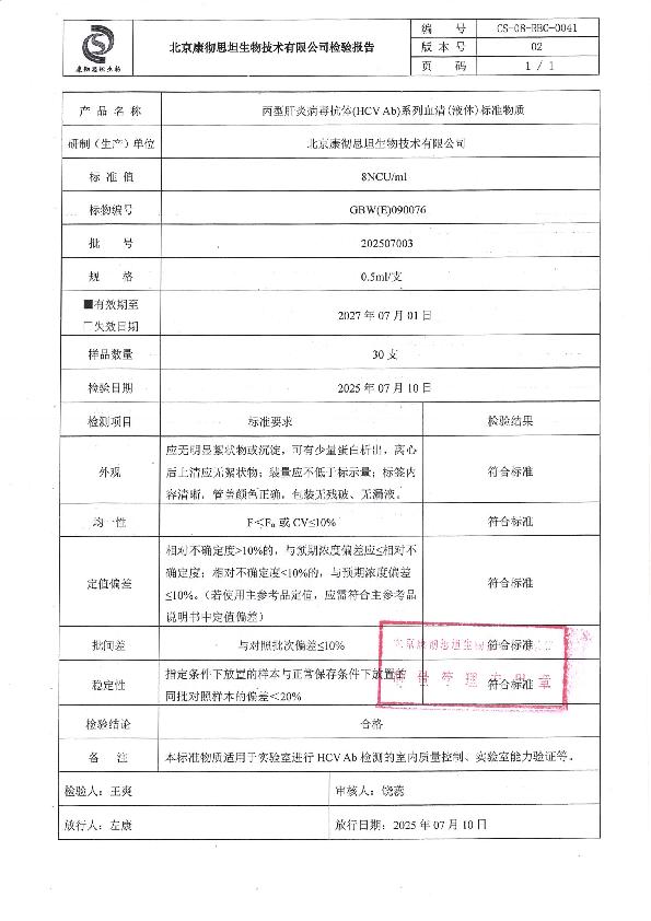 丙型肝炎病毒抗体血清(液体)标准物质