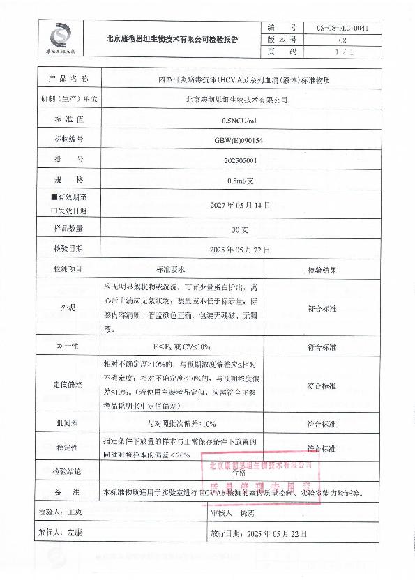 人类免疫缺陷病毒I型抗体血清(液体)标准物质2023年新版本