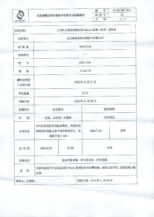 乙型肝炎表面抗原(HBsAg)(液体)质控品2023年新版本