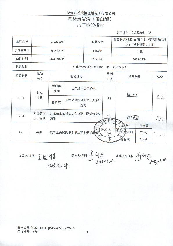 电极清洁液(蛋白酶)