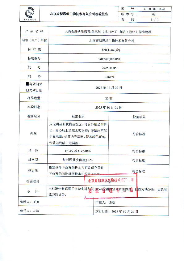 人类免疫缺陷病毒I型抗体血清(液体)标准物质