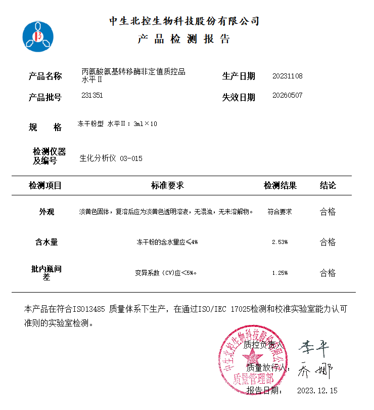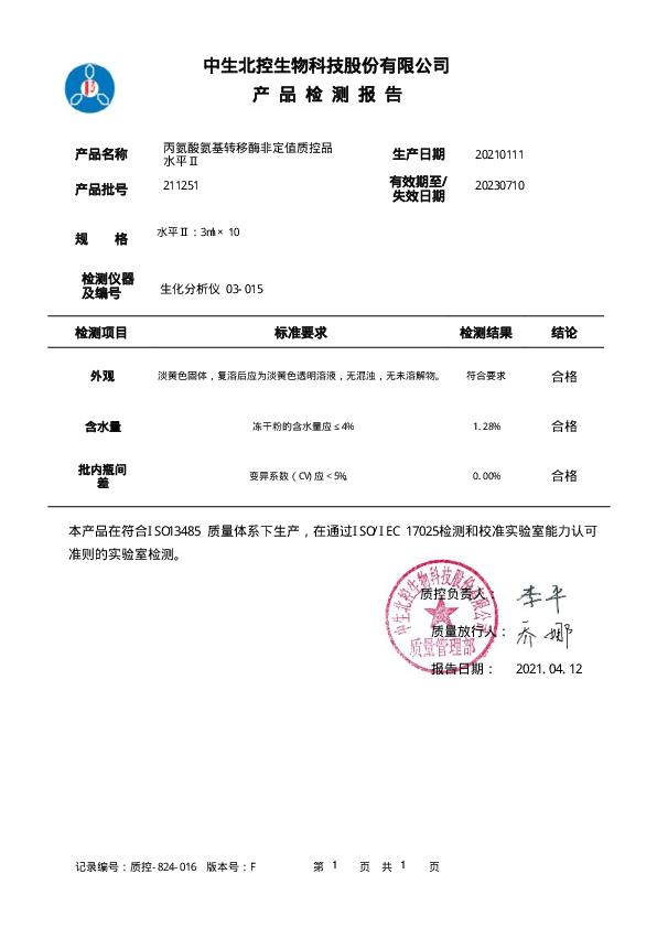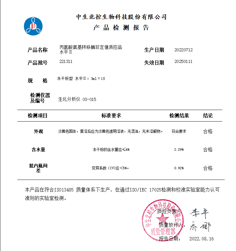 中生丙氨酸氨基转移酶非定值质控品