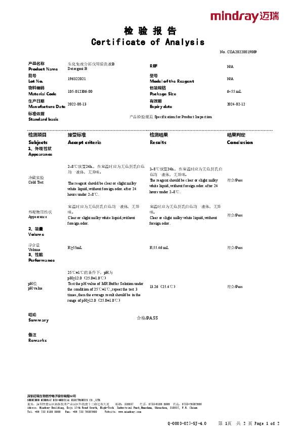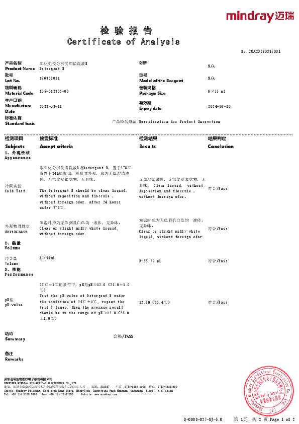 生化免疫分析仪用清洗液B