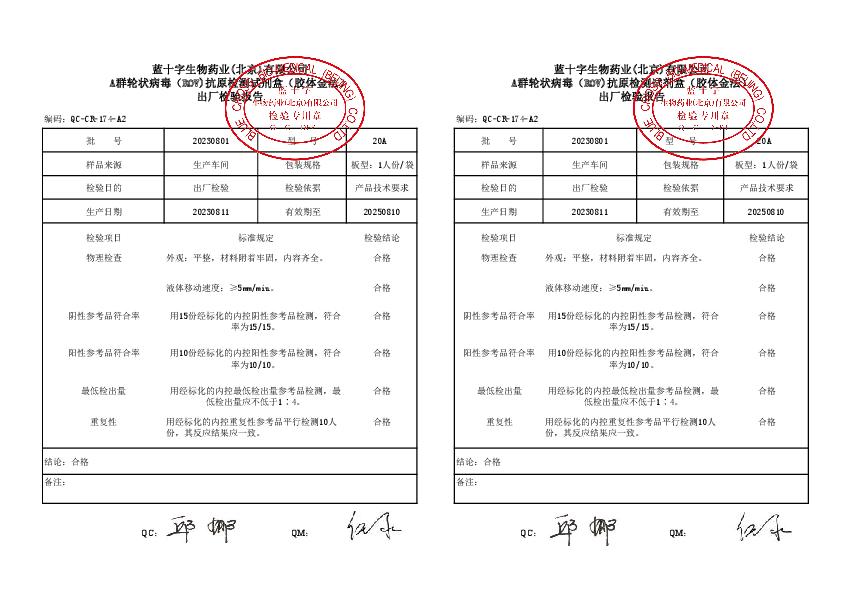 蓝十字A群轮状病毒(ROV)抗原检测试剂盒(胶体金法)