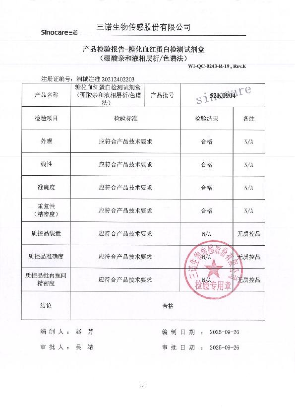 糖化血红蛋白检测试剂盒(硼酸亲和液相层析/色谱法)