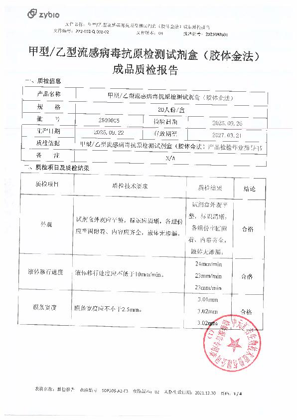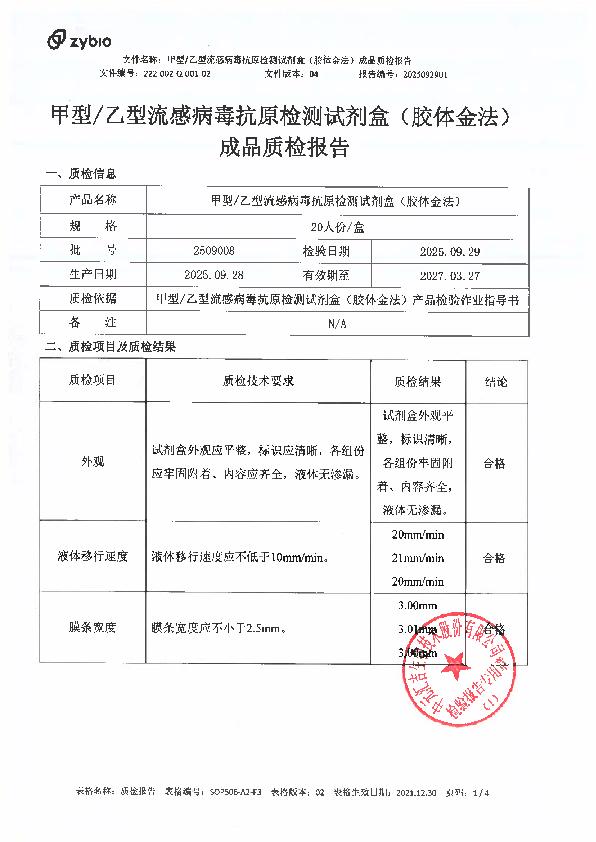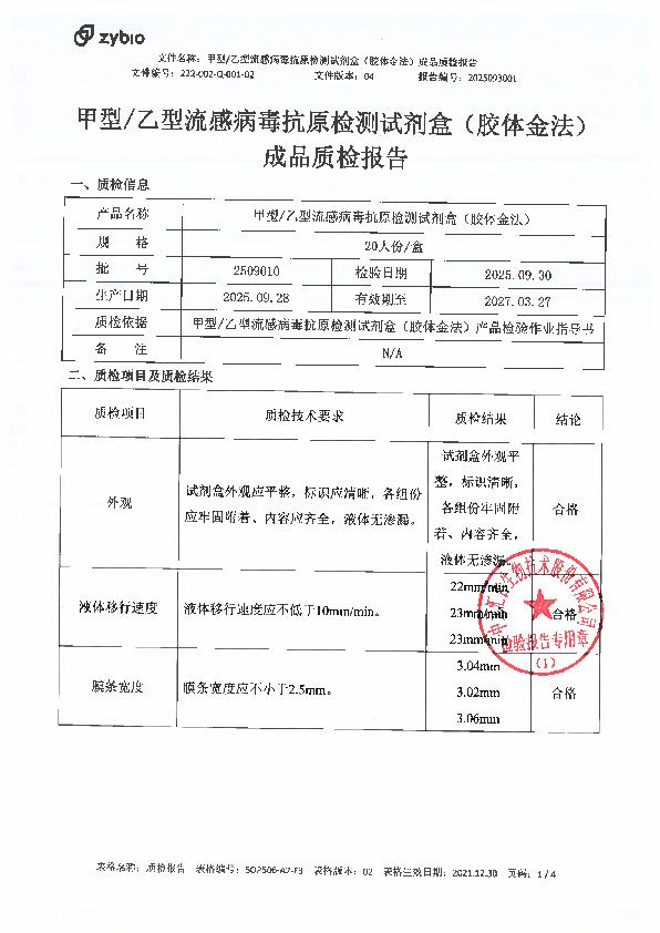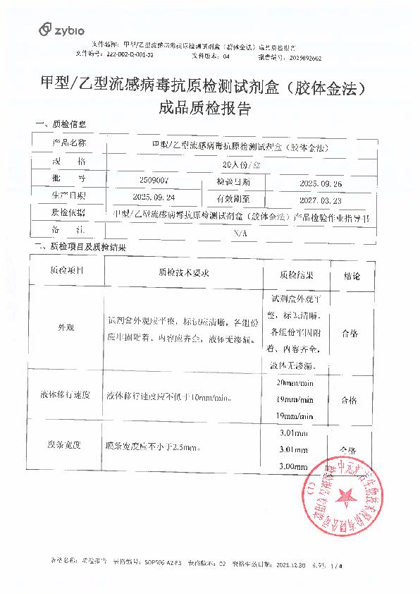 甲型/乙型流感病毒抗原检测试剂盒(胶体金法)