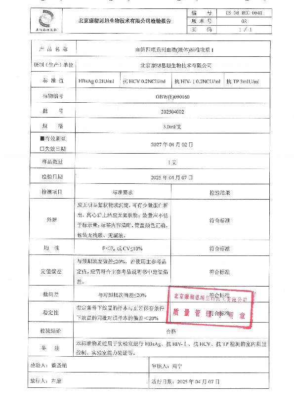 乙型肝炎表面抗原(HBsAg)(液体)质控品2023年新版本