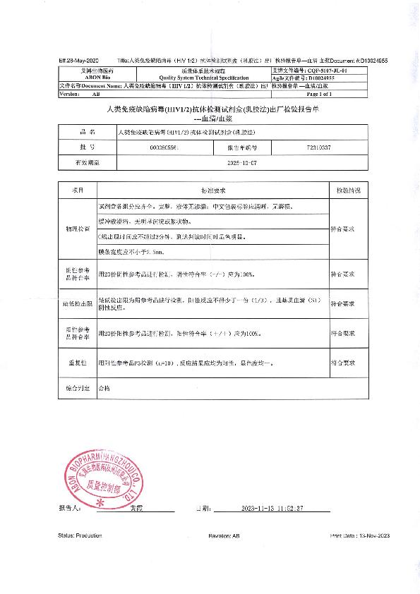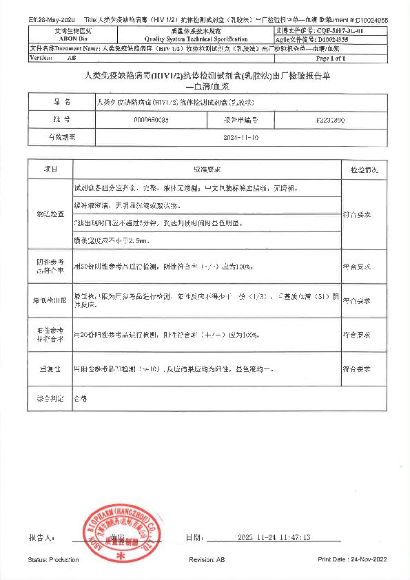 艾博人类免疫缺陷病毒(HIV1.2)抗体检测试剂盒(乳胶法)说明书