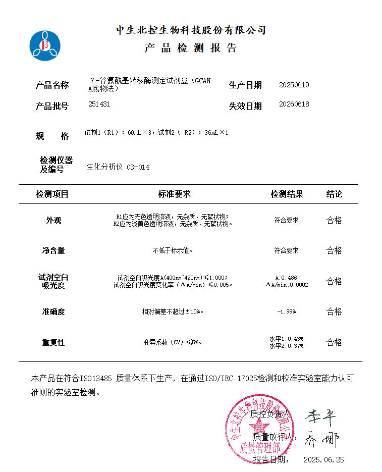 γ-谷氨酰基转移酶测定试剂盒(GCANA底物法)